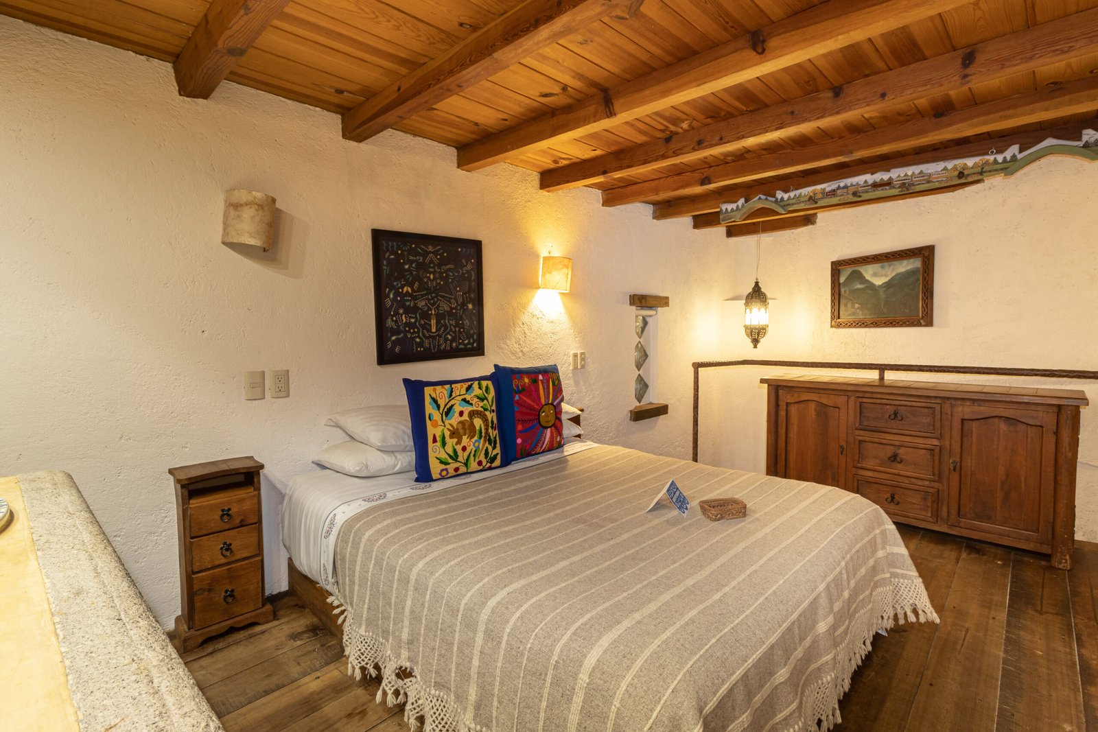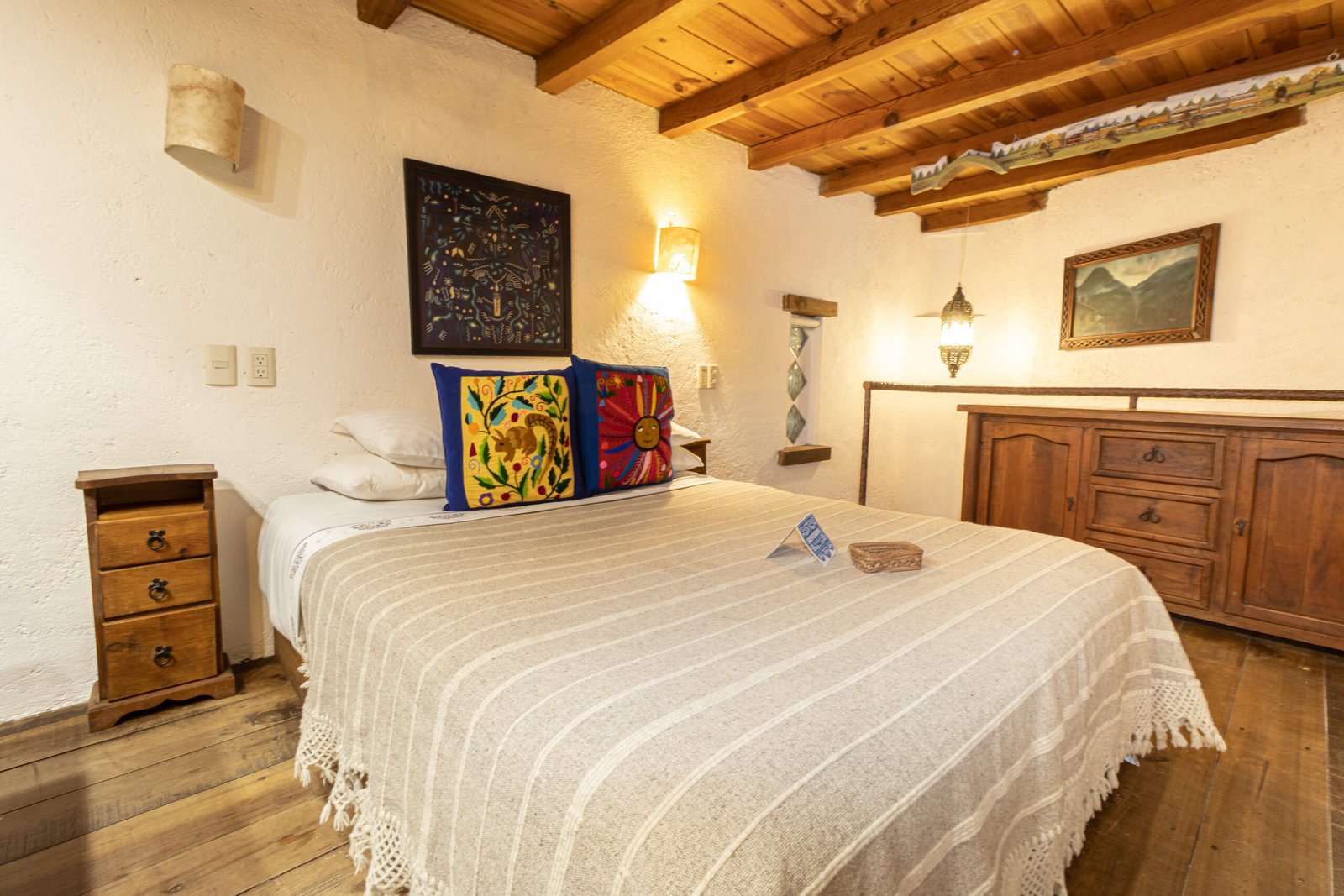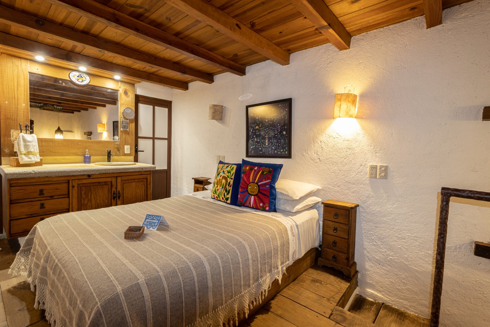 Esta Suite tiene 45 m2. Cuenta con un colchón matrimonial muy cómodo, con funda antiácaros y cubrecolchón acolchado, almohadas suaves y medias con fundas hipoalergénicas. El colchón se sanitiza después de cada cambio de huésped.